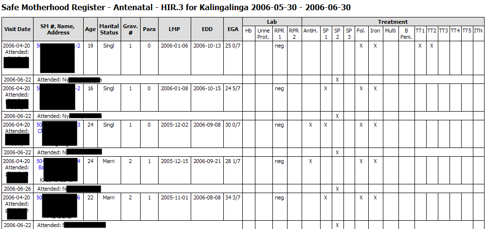 Safe Motherhood Register - Antenatal